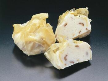 魚肉すり身にこくの有る椎茸や甘みのある玉ねぎ等を加え、ひとつひとつ丁寧に生湯葉で包みました。 蒲鉾とは違う、ソフトな食感をお楽しみください。