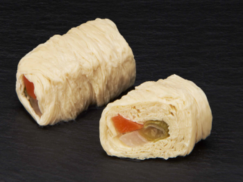 カットした大根、人参、いんげんを贅沢に生湯葉で巻きました。味付け済みですので、そのままお使いいただけます。