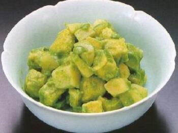 筍(中国)、白味噌、醤油、発酵調味料、ほうれん草、卵黄、砂糖、酒、みりん、かつお節エキス、山椒/酒精、調味料(アミノ酸等)、香料、(一部に卵・小麦・大豆を含む)