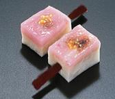 胡麻豆腐とさくら味噌を二層に流し、一口サイズの田楽に仕上げました。